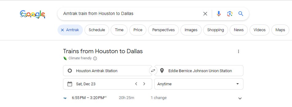 I was actually shocked to learn there is no public transit connecting the two biggest markets in Texas. Well, maybe I shouldnāt say ānoā public transit⦠you could rail hop a little on Amtrak and make your way in a swift⦠20 hours???