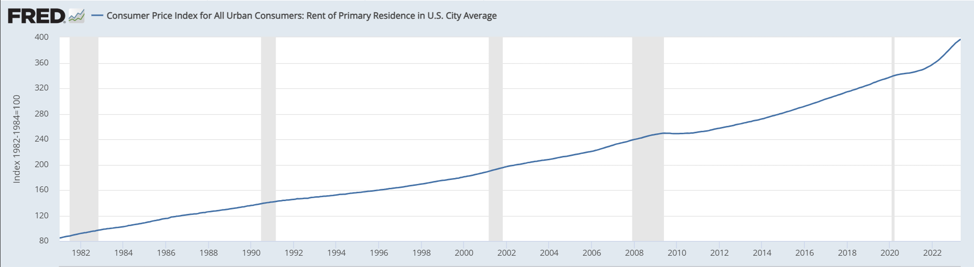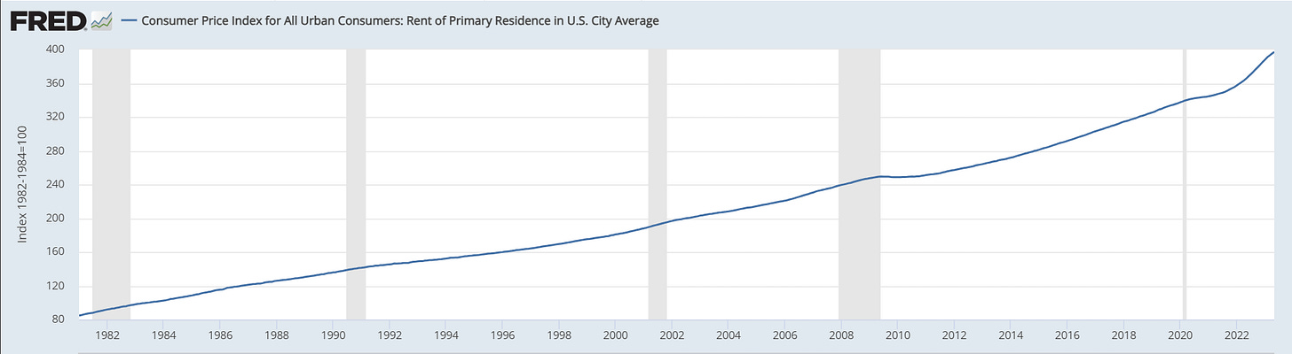Here’s the CPI on rents for nearly the same time period, according to FRED: