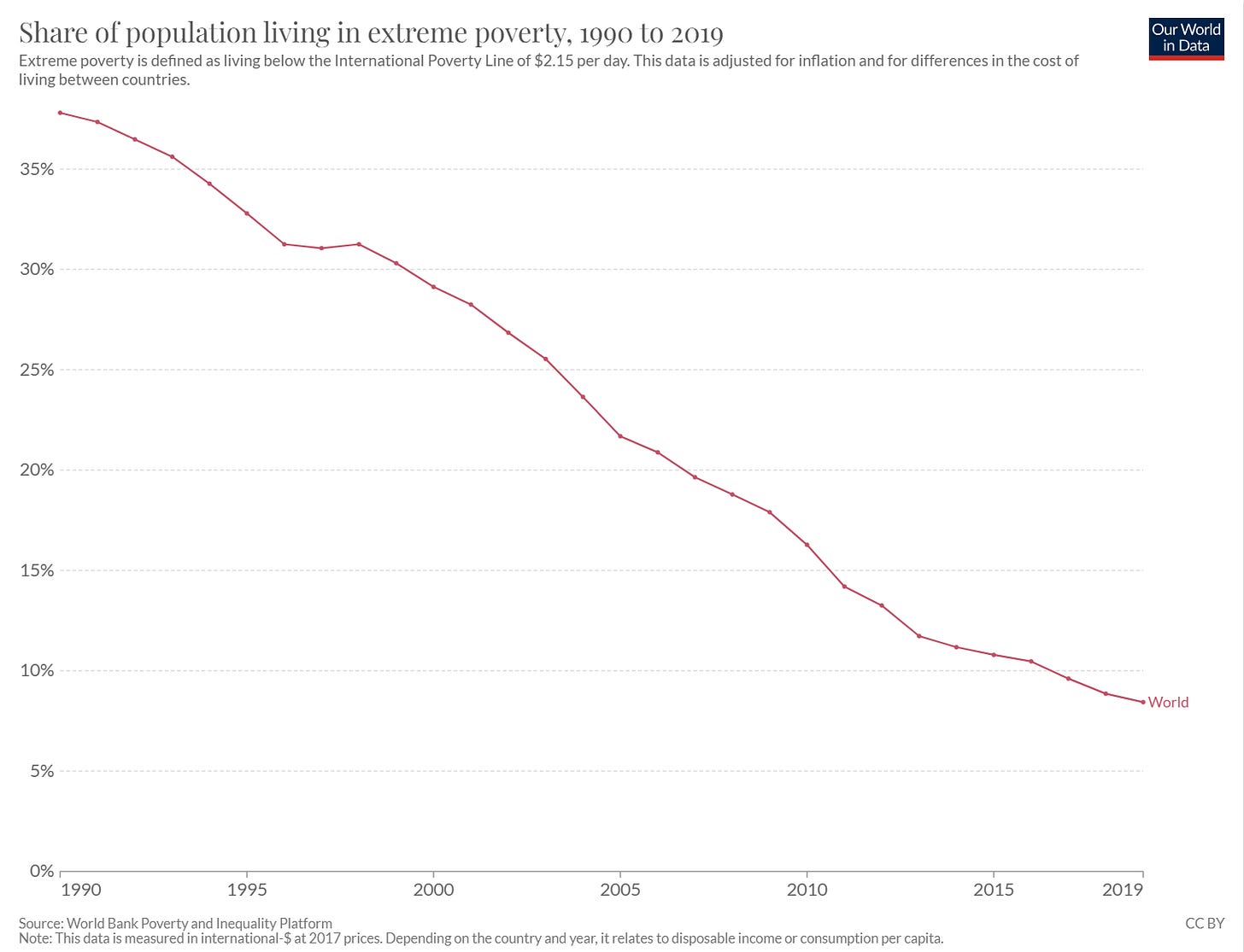There is still so, so much work to be done on this front. With that context, let’s celebrate some of the progress we’ve made over time in the case of extreme poverty: