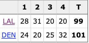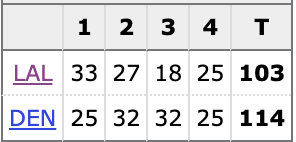 What’s even more interesting is that this is reminiscent of their matchup in last years conference finals, when Denver overtook a few Laker leads in the third and fourth quarters as well on their way to sweeping the Lakers 4 games to 0.